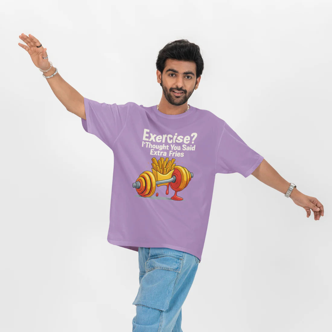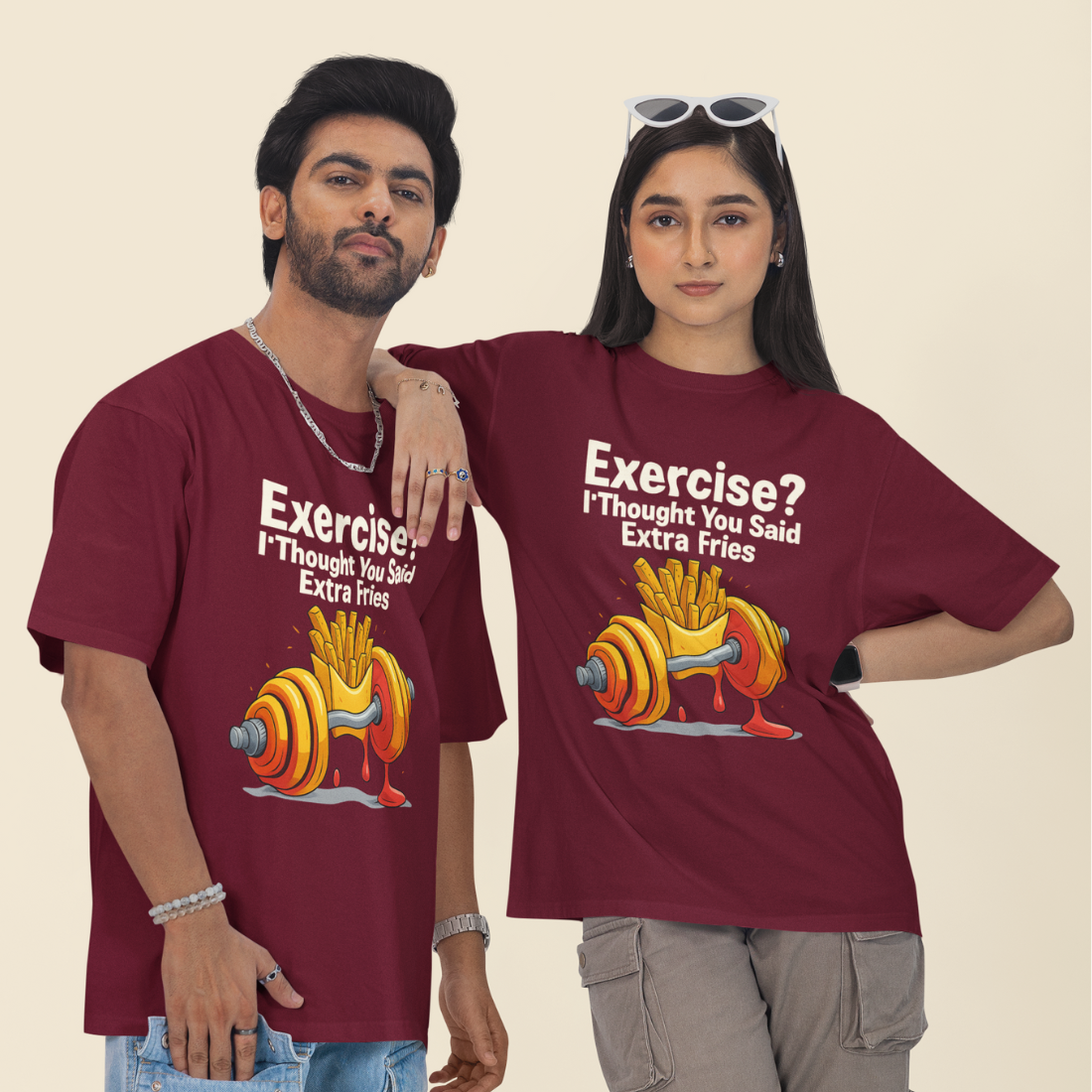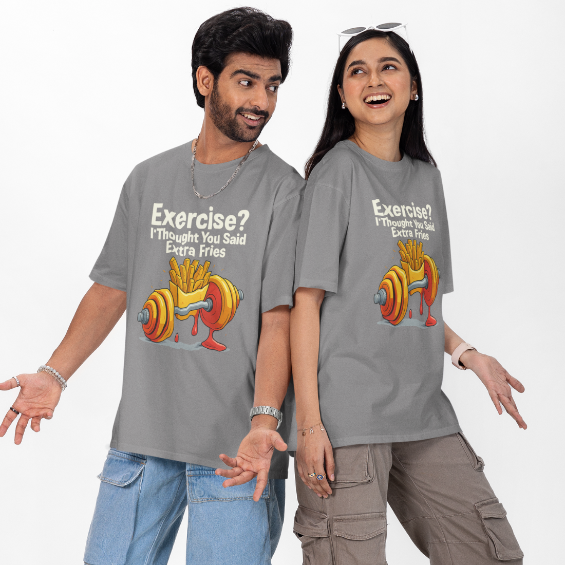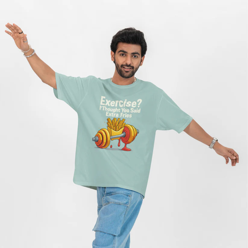 Exercise? I Thought You Said Extra Fries Unisex Oversized T-Shirt